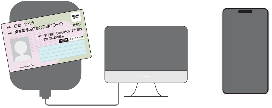 マイナンバーカードをICカードリーダライタ(または対応スマートフォン)で読取ります。