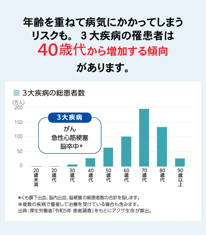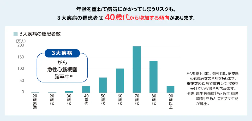 3大疾病にかかると治療にともなう経済的負担は軽くありません。病気になって収入が減っても保険料の負担なく資産形成が継続できると安心です。