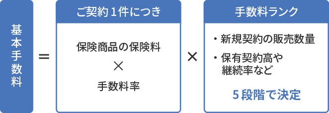 販売した保険商品毎の手数料率と手数料ランクによって、報酬額を算出します。
