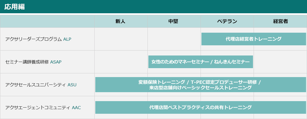 経験・未経験いずれの皆様もレベルに応じたスキルアップを可能にする教育体系をご用意しています。
