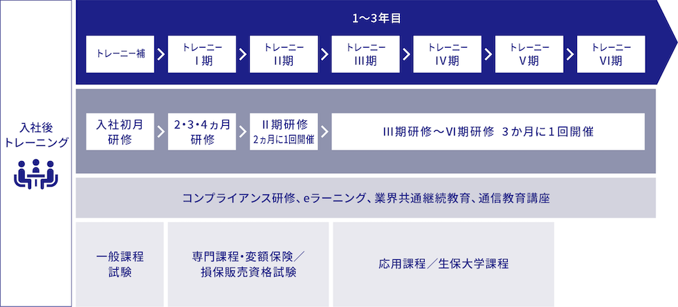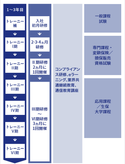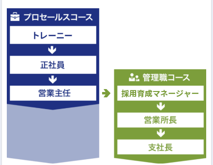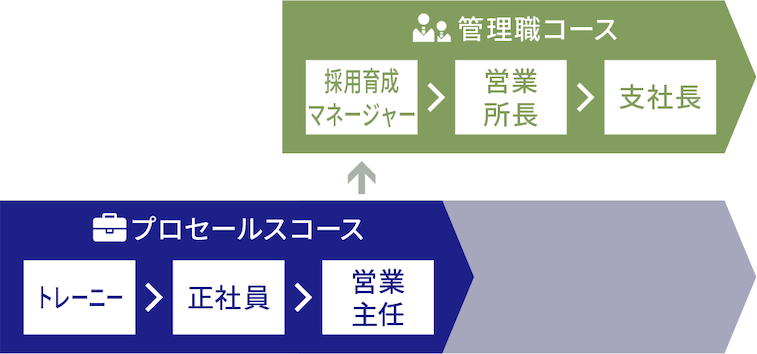 また、一定基準を満たして本人の意思と適正を見極め、採用育成マネージャー・営業所長・支社長へと管理職に登用される道も拓かれています。